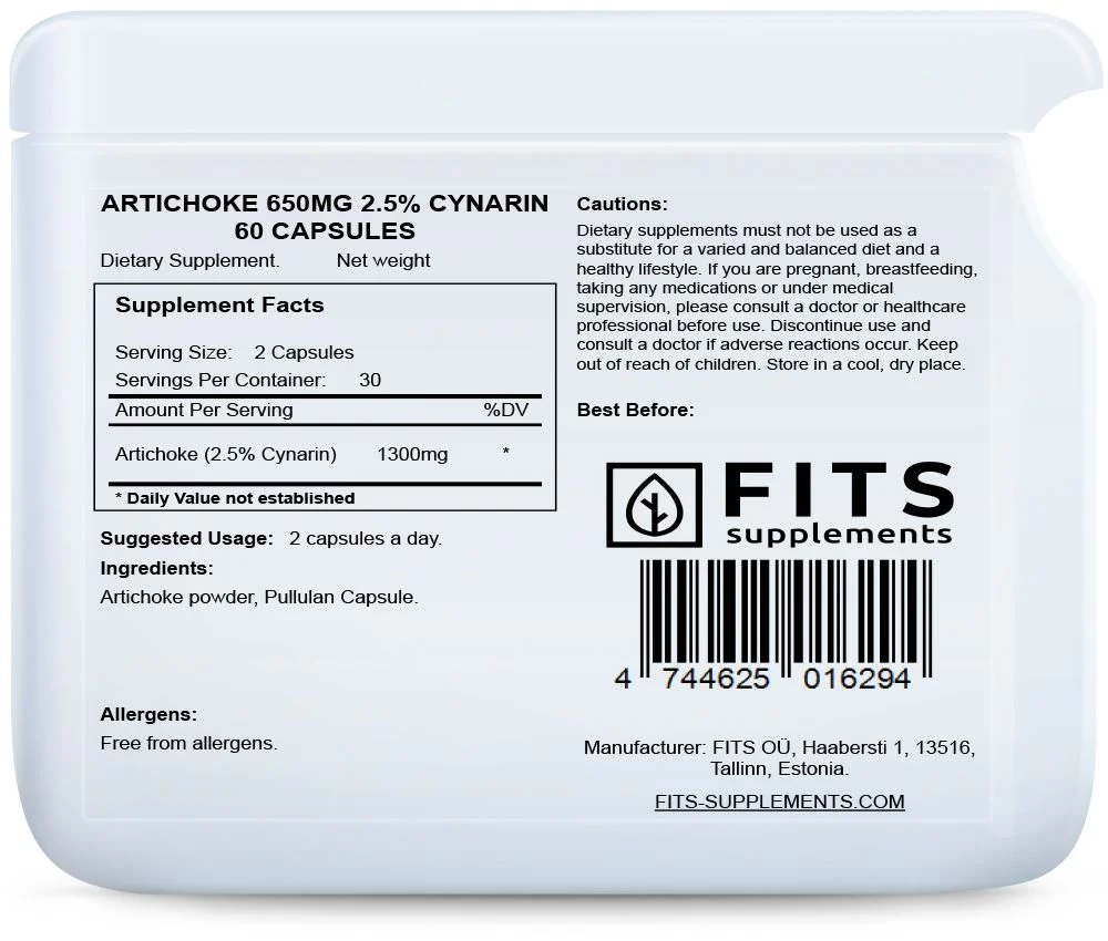 Artišokk on kasulik teie südame-veresoonkonna süsteemile, maksale, seedesüsteemile, luudele, kõhrele ja kudedele. See taim sisaldab palju võimsaid toitaineid, sealhulgas magneesiumi, rauda, b-vitamiine, kaaliumi, kaltsiumi ja tsinki. Need artišoki kapslid on abistavaks vahendiks seedesüsteemihaiguste ravimisel, sealhulgas soole ärritussündroomi korral (inglise keeles IBS). See on suurepärane toidulisand maksa tervise toetamiseks, aidates toota uusi terveid maksarakke. Sobib inimestele, kes soovivad kaalust alla võtta selle stimuleeriva ainevahetuse efekti tõttu.