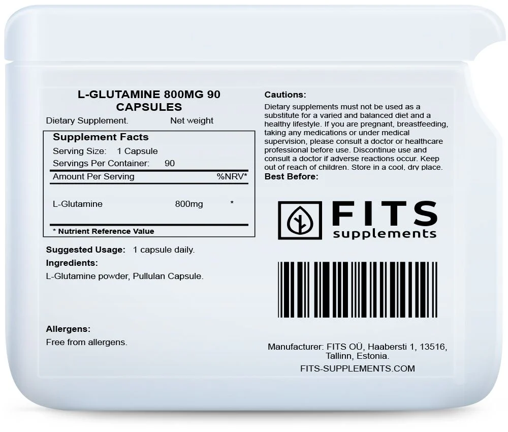 L-glutamiini kapslid on toidulisand, mis on loodud looduslikke, orgaanilisi ja valdavalt taimseid komponente kasutades. Iga kapsel sisaldab umbes 500 mg L-glutamiini, mis on üks 20st tavalisest aminohappest, mis moodustavad peaaegu kõik valgud. See on äärmiselt oluline aminohape, mida leidub suures koguses lihastes ja ka kopsukoes.