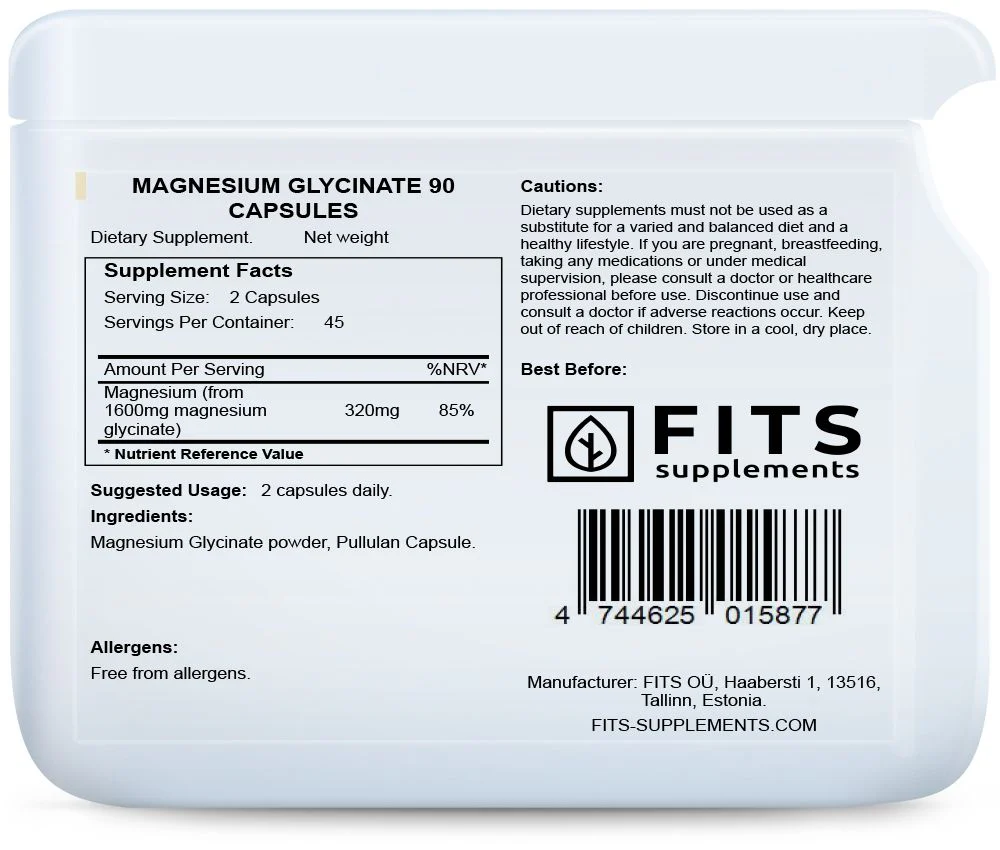 Magneesiumglütsinaat on hästi imenduv magneesiumi vorm, kus mineraal on seotud aminohappe glütsiiniga. See muudab toidulisandi õrnaks maole ja sobivaks isegi neile, kellele teised magneesiumivormid põhjustavad ebamugavust.